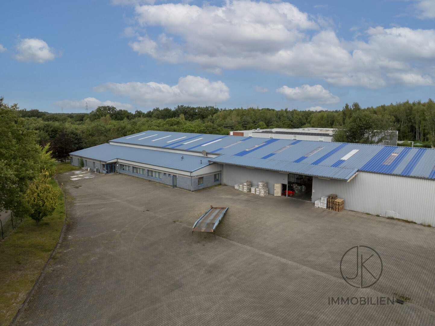 Die angeschlossene Lagerhalle wurde als Stahlrahmenkonstruktion mit Stahlbetonbodenplatte und einschaliger Trapezblechverkleidung errichtet. Sie verfügt über großflächige Lichtbänder zur natürlichen Belichtung, zwei Rolltore mit einer Größe von jeweils ca. 4,00 m × 4,50 m, Fluchttüren sowie eine funktionale Be- und Entlüftung über First und Traufen.